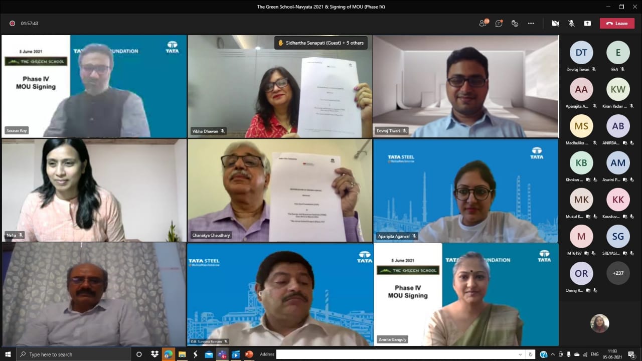 The MoU was signed by Chanakya Chaudhary, Vice President, Corporate Services, Tata Steel, and Dr Vibha Dhawan, Director General, TERI in a virtual event — Navyata 2021, organised also to facilitate the remarkable efforts put in by students, teachers, schools and other stakeholders engaged in various aspects of the Green School Project. Pankaj Kumar Satija, Chief Regulatory Affairs, Tata Steel; Sourav Roy, Chief CSR, Tata Steel and Ms Neha, Fellow, Environmental Education and Awareness, TERI were present in the function along with other dignitaries from Tata Steel and TERI. More than 350 participants including school students, teachers, principals from member schools, guests participated in the event.