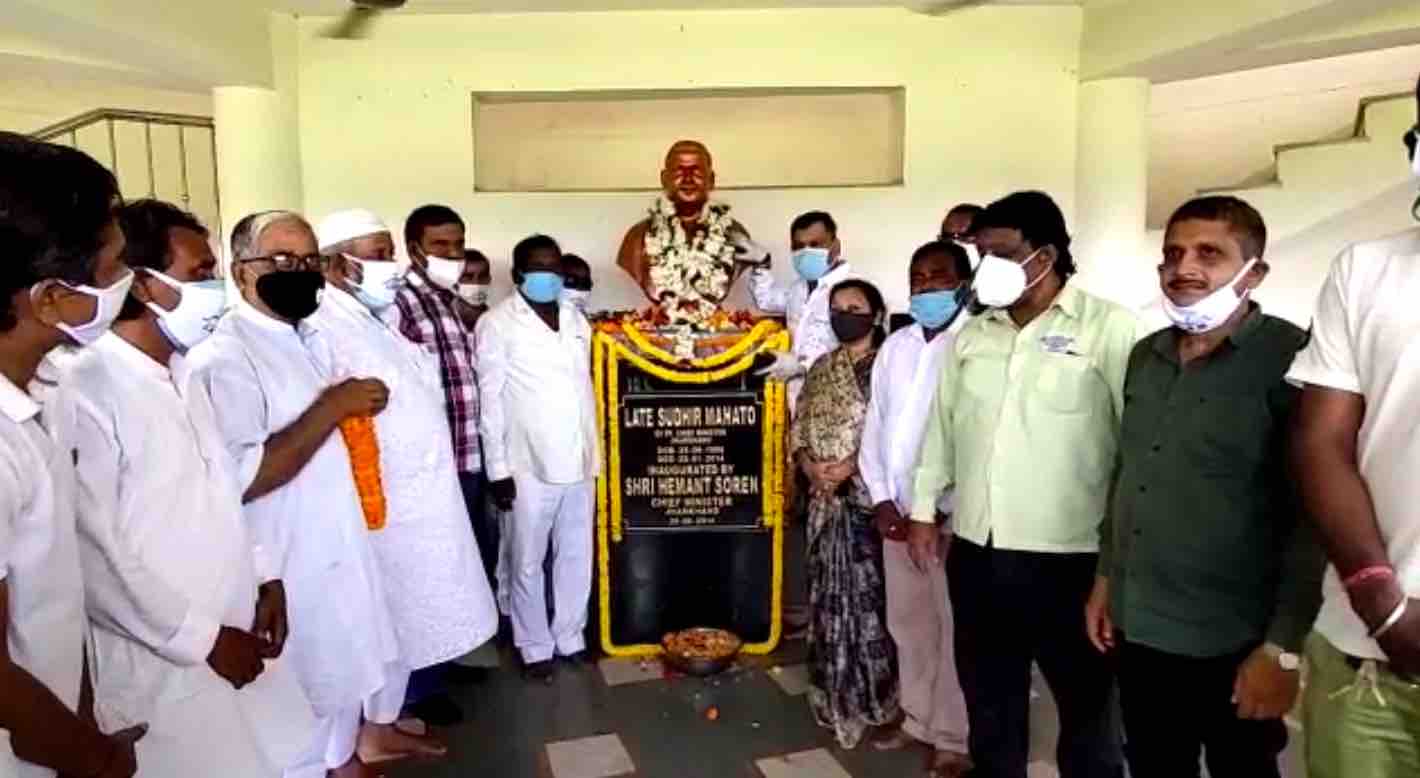 Tributes were paid to him at different places according to the government social distancing guidelines on Friday. Workers and leaders of JMM paid homage to him at Kadma Sudhir Mahato Stadium, Bistupur Garage, Sakchi Office, besides at all the block and panchayat level offices of the party.