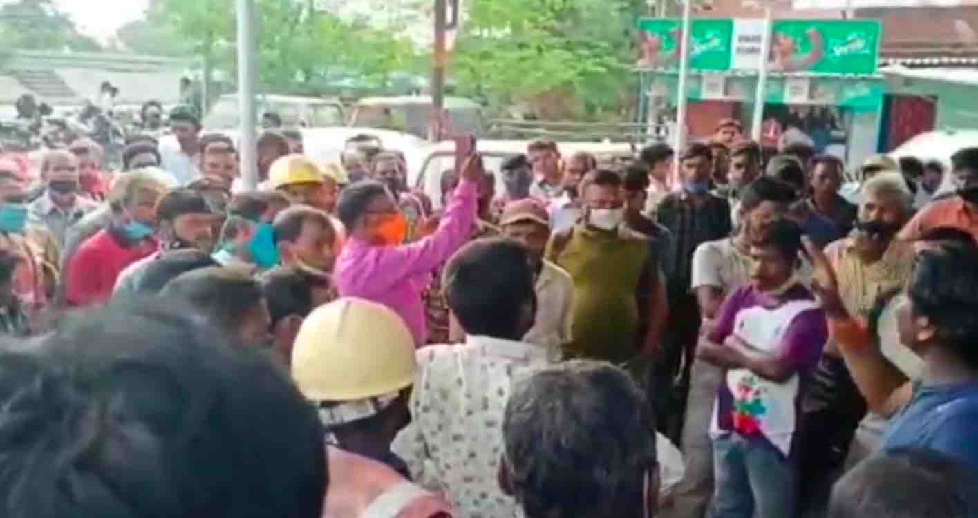 Jamshedpur: Hundreds of contract workers of different vendors of Processing and Sales yard at Marine Drive started an agitation in front of yard gate on Monday in support of their demands.