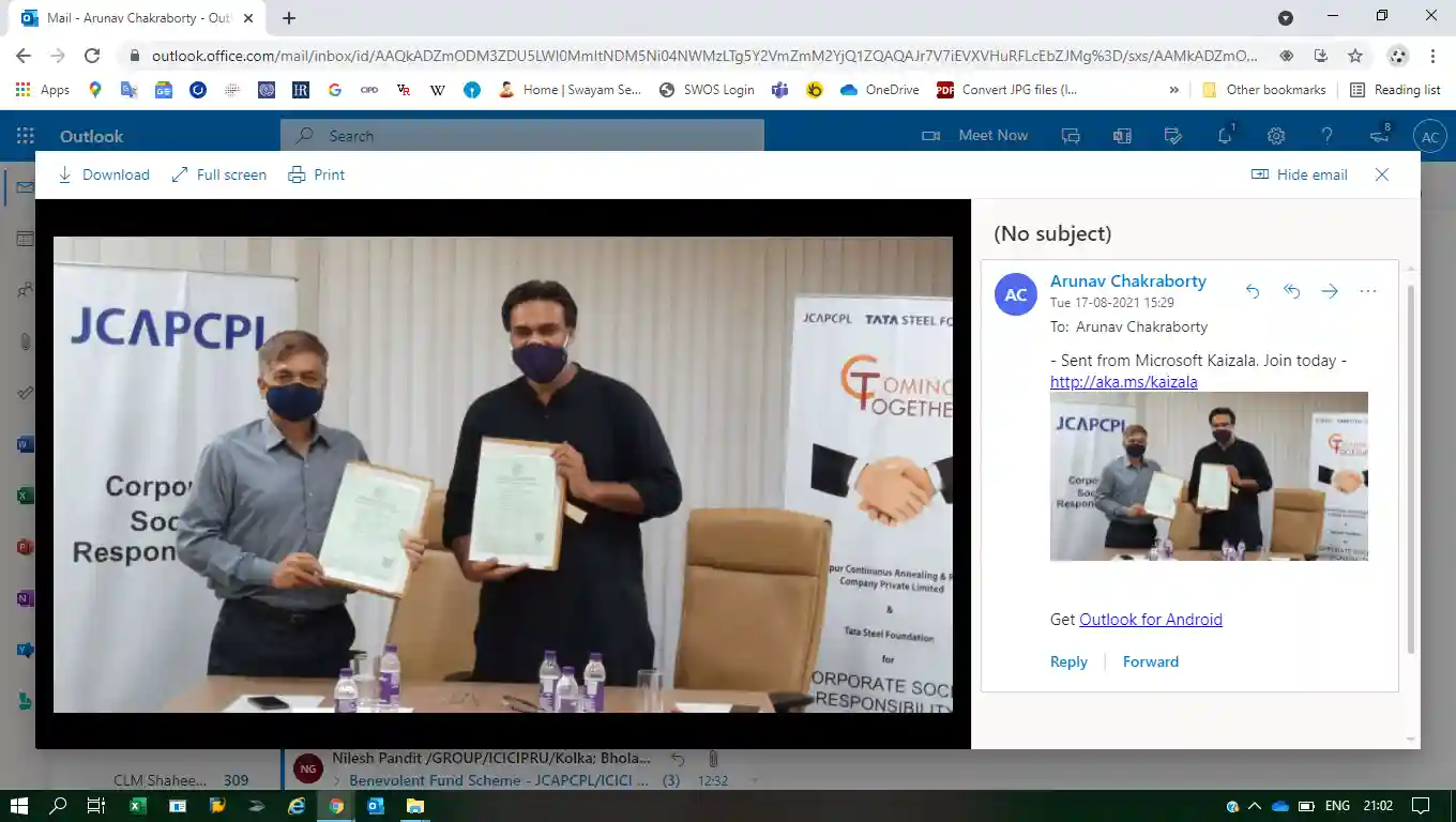 Jamshedpur: Jamshedpur Continuous Annealing & Processing Company Private Limited (JCAPCPL) signed a Memorandum of Understanding (MoU) with Tata Steel Foundation (TSF) on the Company’s 9th Anniversary on August 17, 2021, to forge a meaningful partnership in setting up the first SABAL Centre at Jamshedpur for supporting the cause for Persons with Disabilities (PWDs).