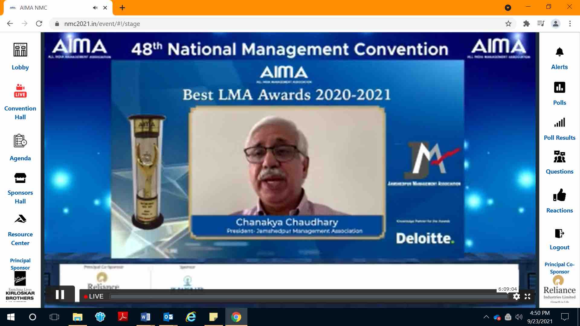 The award was presented virtually on September 23. Mr Chanakya Chaudhary (President JMA) received the award on behalf of JMA and acknowledged the contribution of board members of JMA , managing team of JMA , corporate institutions and academic institutions in Jamshedpur.