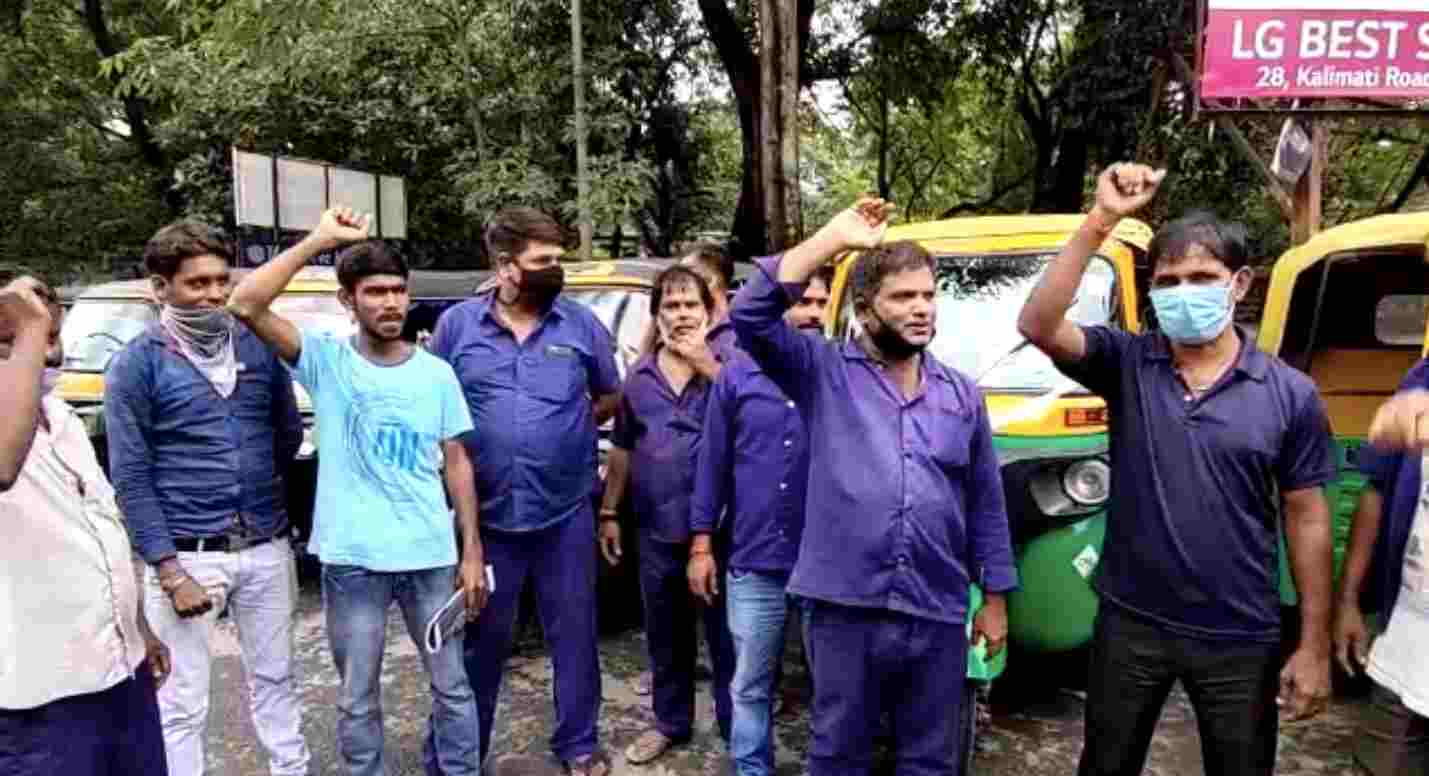 Jamshedpur: Auto-rickshaw drivers of Chaibasa Bus Stand near Tatanagar Railway Station demonstration at the DC office and sought protection from the district administration against those who are forcing them to pay rangadaari.