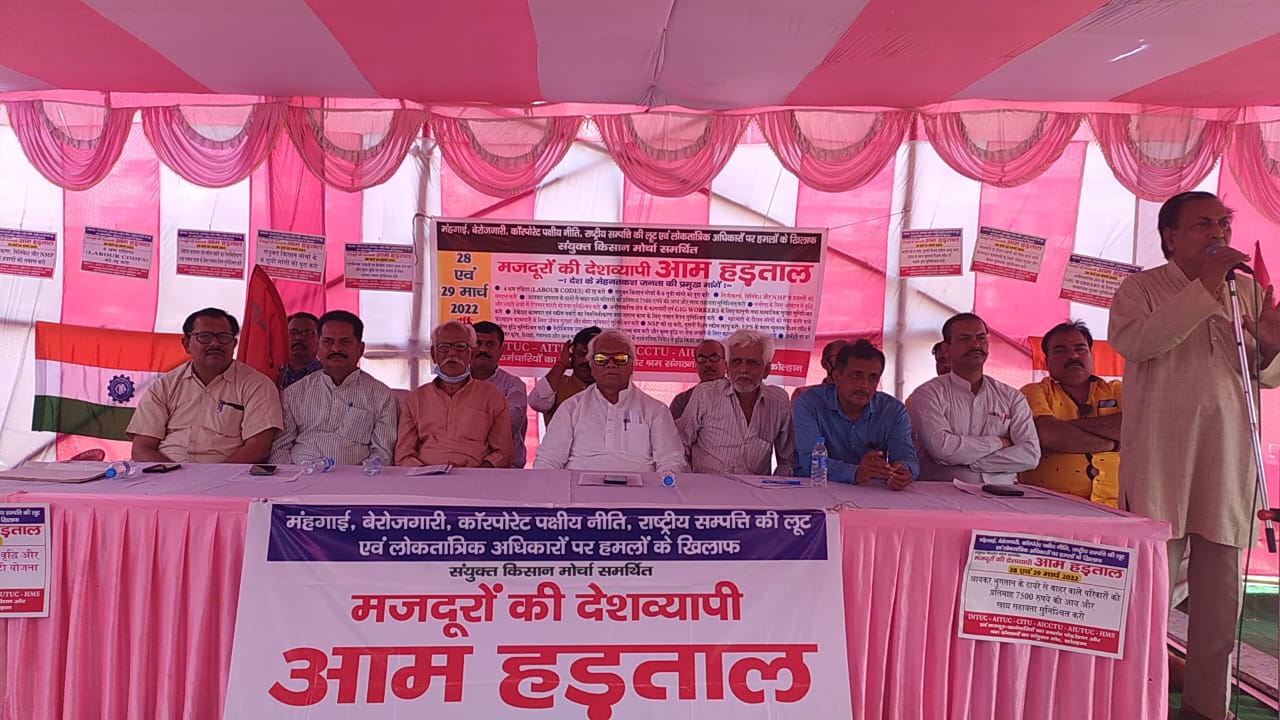 सभा का संचालन अंबुज ठाकुर तथा धन्यवाद ज्ञापन विनोद राय द्वारा किया गया. सभा को संबोधित करते हुए महेंद्र मिश्रा, संजीव श्रीवास्तव, राणा सिंह, परविंदर सिंह, ओमप्रकाश सिंह, जेपी सिंह, सुब्रत विश्वास, एनएन पॉल, विक्रम कुमार, विष्णु देव गिरी, आरएन ठाकुर, अरुण पाल आदि वक्ताओं द्वारा हड़ताल को ऐतिहासिक रूप से सफल बनाने की अपील की गई तथा सभी राजनीतिक दलों से भी मजदूरों और किसानों के संयुक्त संघर्ष के साथ खड़ा होने और जनता बचाओ-देश बचाओ के नारे का समर्थन करने की अपील की गई है. इस मौके पर सत्येंद्र सिंह, अजय सिंह, केके तिवारी, नागराजू, केडी प्रताप, रामजी सिंह, दीपक कुमार आदि के नेतृत्व में विभिन्न ट्रेड यूनियनों के कार्यकर्ता बड़ी संख्या में मौजूद थे.