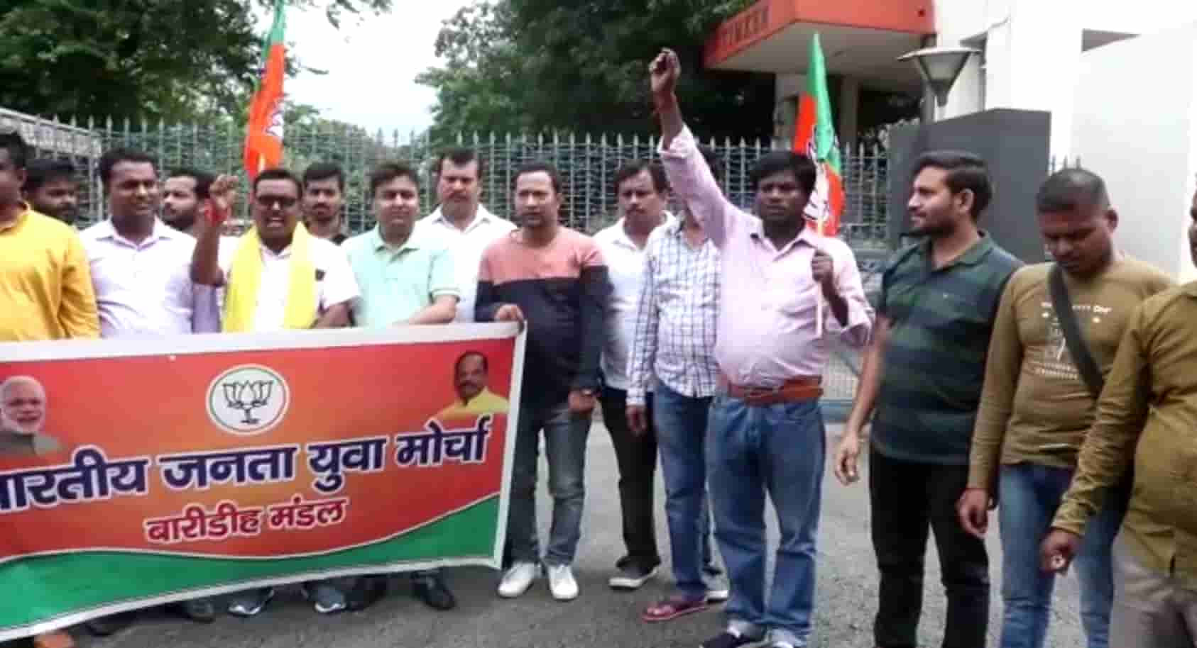 भाजपा युवा मोर्चा के जिला अध्यक्ष अमित अग्रवाल के नेतृत्व मे यहाँ प्रदर्शन किया गया।