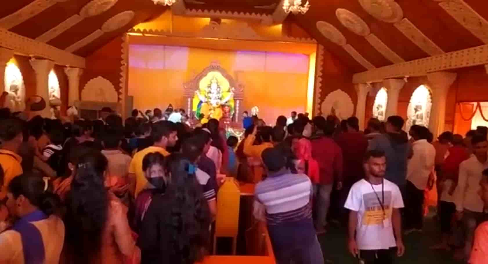 कदमा गणेश मैदान पूजा पंडाल में भक्तजनों की भीड़ उमड़ी