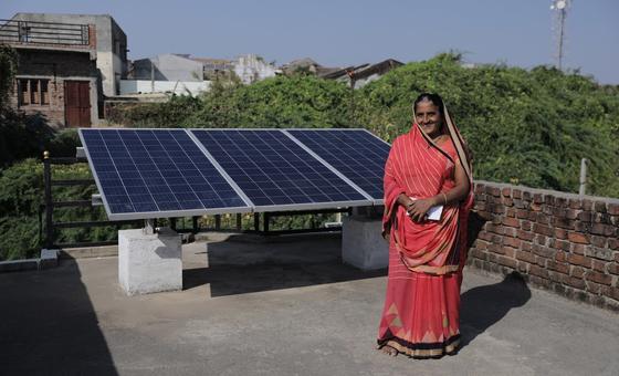 Gadvi Kailashben, a 42-year-old widow, lives in Modhera, home to the centuries-old Sun Temple and now the first village in India that runs on solar energy.