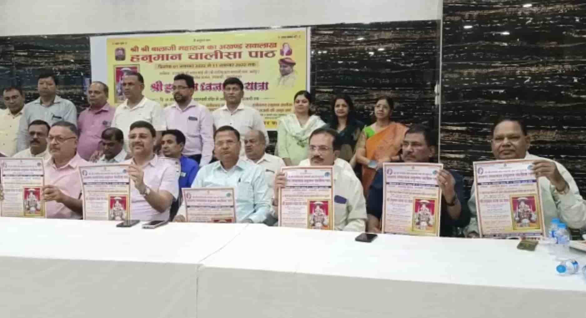 61 जोड़ों के द्धारा संकल्प और अखंड सवालाख हनुमान चालीसा पाठ का शुभारंभ मंगलवार 01 नवम्बर को सुबह 10 बजे होगा। इससे पहले मंगलवार की सुबह 07।30 बजे साकची ठाकुरबाड़ी रोड़ स्थित महालक्ष्मी दादी मंदिर में गो पूजन, सुबह 08 बजे श्री हनुमान ध्वजा पदयात्रा शुरू होगा, जो साकची अग्रसेन भवन जायेगी।