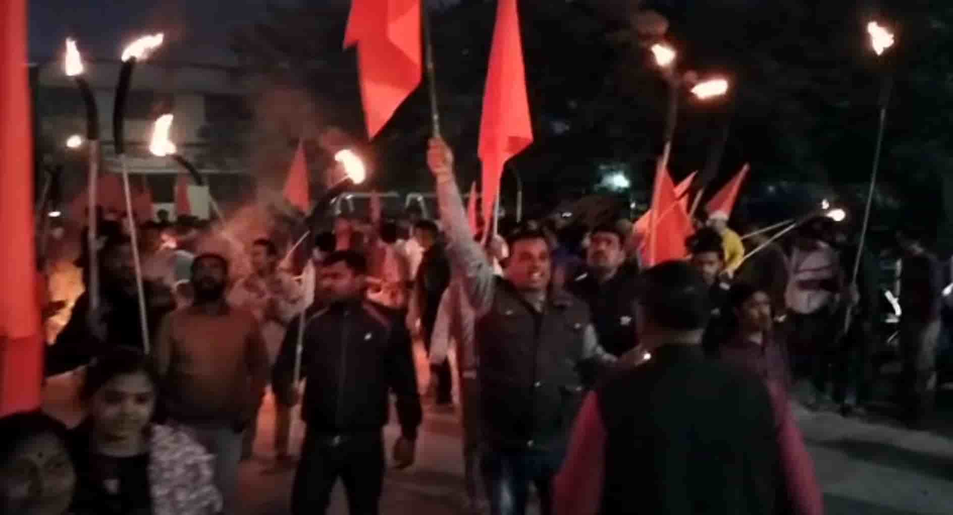 On Sunday, the committee organized a protest by marching in a torchlight rally. The torchlight procession proceeded from Gandhi Maidan to Mango Chowk.