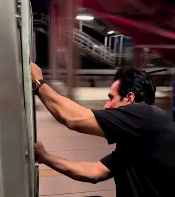 A video of famous Bollywood actor and social activist Sonu Sood sitting at the door of a train while traveling has gone viral.