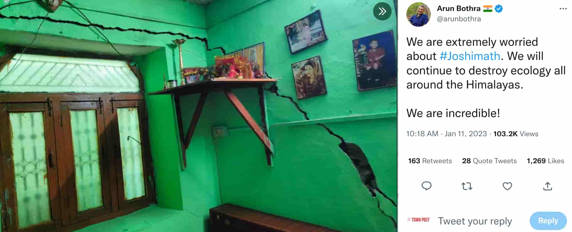 The ecological destruction, land subsidence and the resulting devastation at the Himalayan township of Joshimath is very sad.