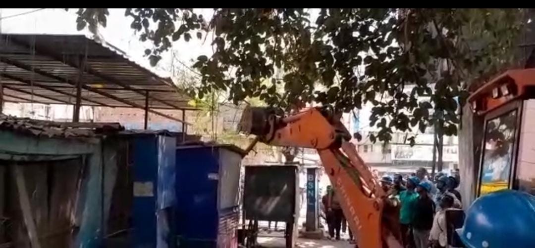 साकची में गरजा बुलडोजर, कालीमाटी रोड से जेएनएसी ने हटाया अतिक्रमण