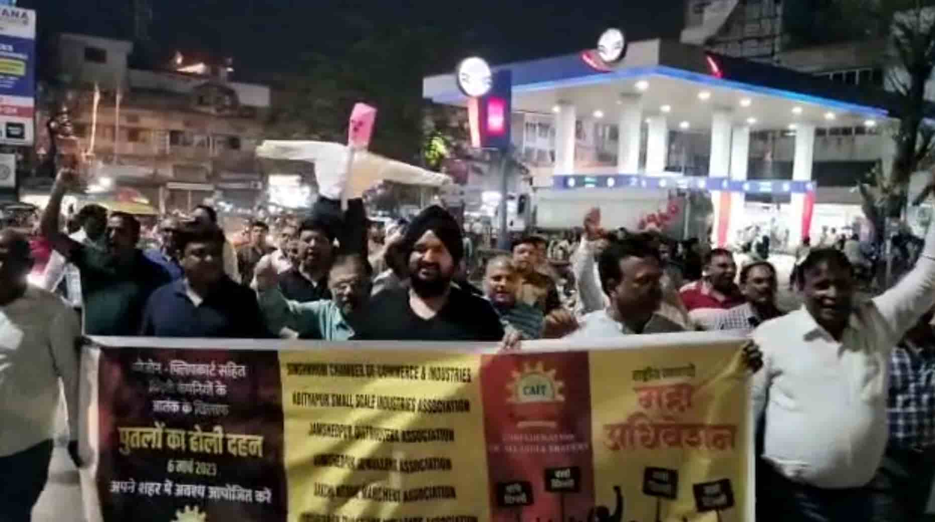 Jamshedpur traders burn effigy of e-commerce companies at Sakchi