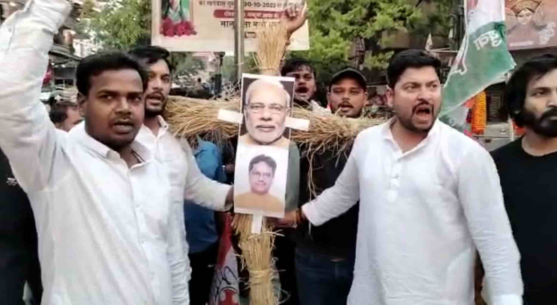Congress workers protest attack on Dr. Ajoy Kumar in Tripura, burn Modi and Shah’s effigies at Sakchi, Bhalubasa