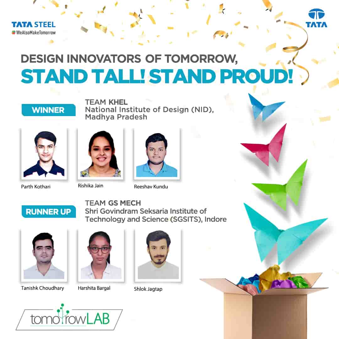 Dr. Debashish Bhattacharjee, Vice President, Technology & New Materials Business, Tata Steel, said: “TomorrowLAB is a unique opportunity for students to innovate, build their entrepreneurship skills and gain valuable experience. We believe this platform will help us identify and nurture the next generation of talent to create solutions of tomorrow. Congratulations to the winners as well as the participants who presented some truly innovative ideas that will help shape the future of India.”