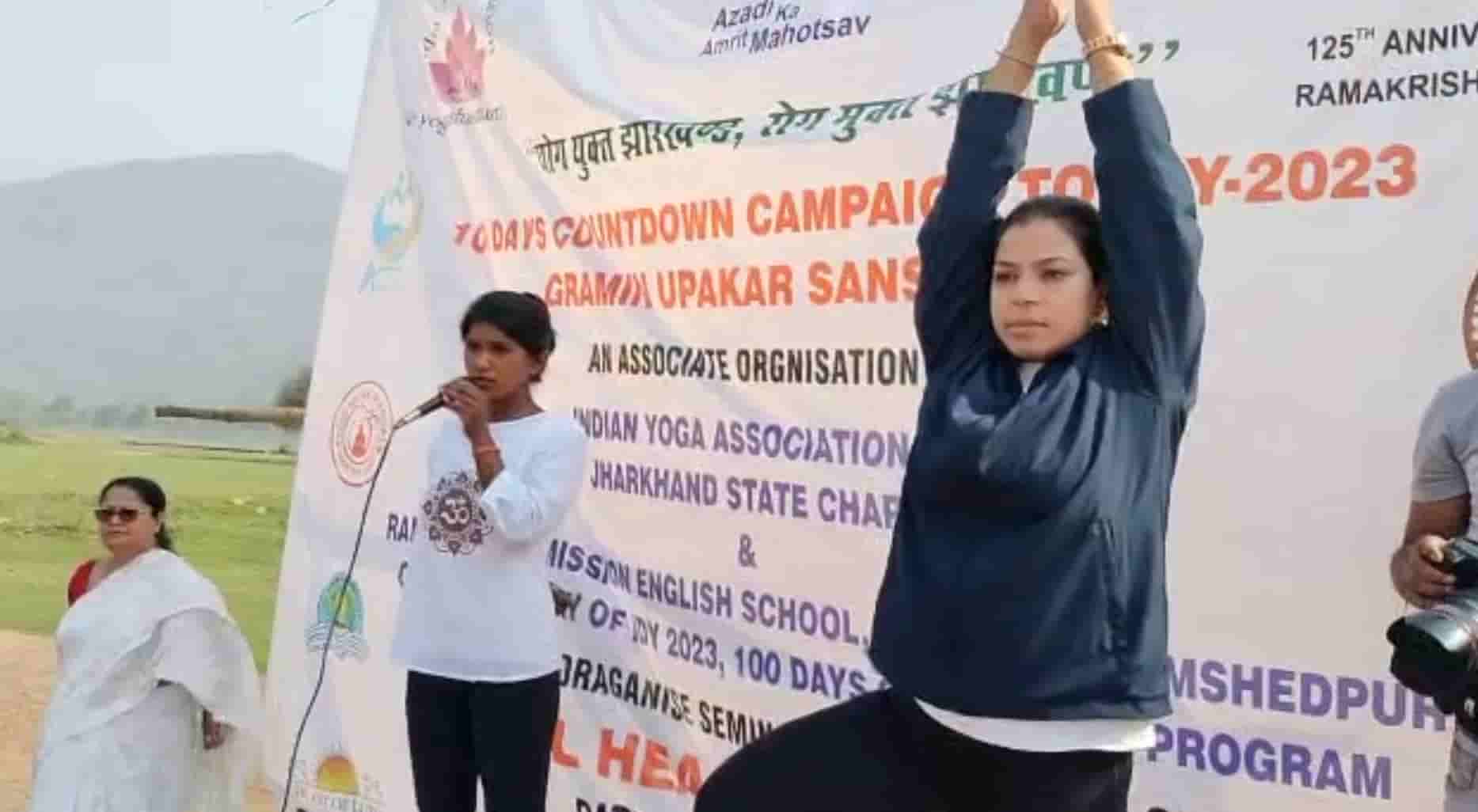 Jamshedpur: Huge yoga camps are being organized across the country before World Yoga Day by the Ministry of AYUSH, Government of India. One such camp was also held in Jamshedpur on Dimna Lake premises.