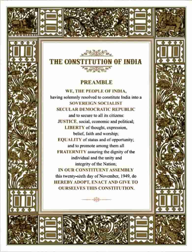 It establishes India as a sovereign, socialist, secular, democratic republic, with the states serving as administrative sub-units.