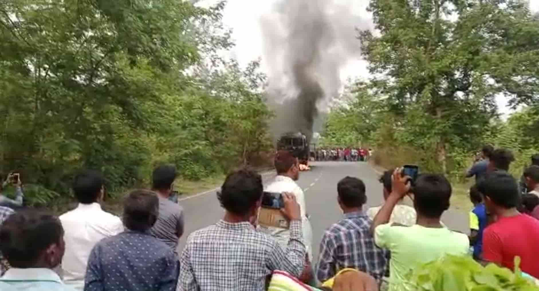 Passenger Bus Catches Fire on Jamshedpur-Patamda Road, No Injuries Reported