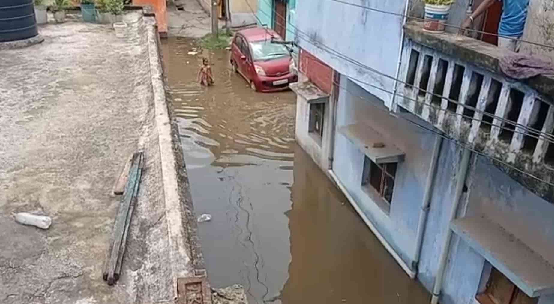 Local resident Santosh Srivastava reported that all houses in Makdampur, Shiv Mandir, Machhua Pada, and Mahto Pada of the Dakshin Kalimati Panchayat have been submerged.
