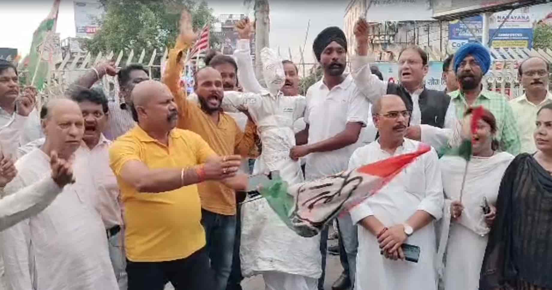 The protest took place at the Sakchi Gol Chakkar in Jamshedpur, where the District Congress Committee burned an effigy of the Chief Minister Chouhan.