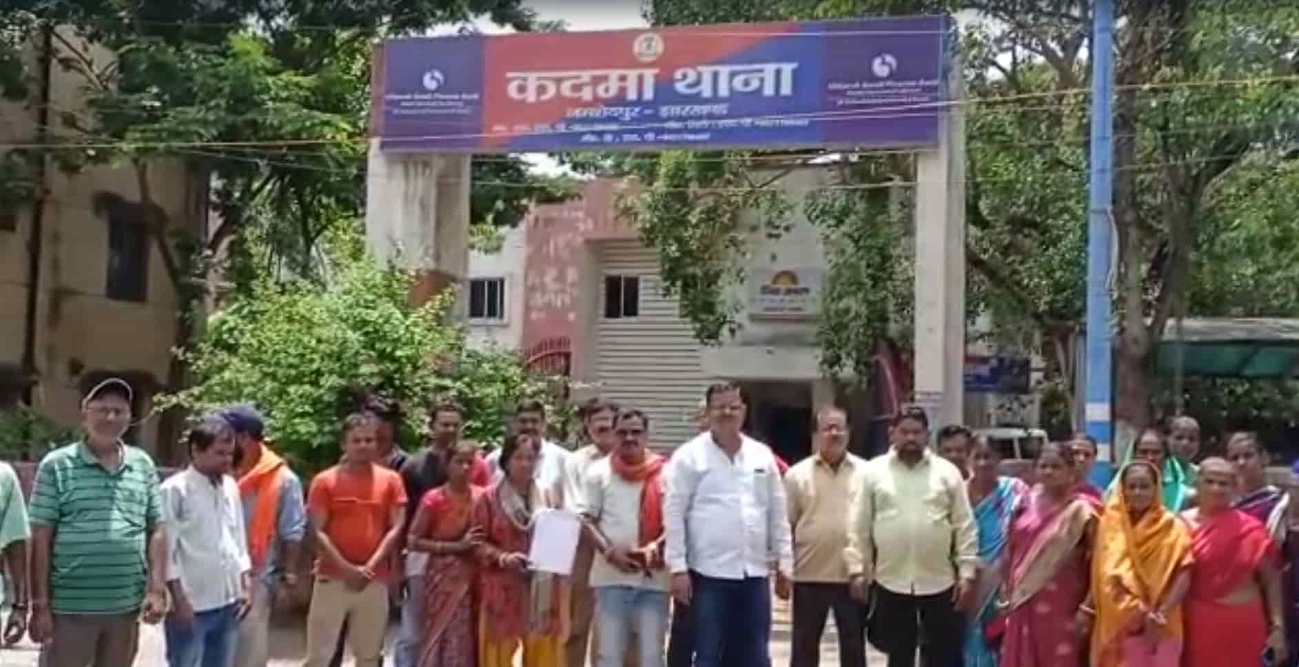 JAMSHEDPUR – Members of the Baba Baidyanath Seva Sangh protested at Kadma police station, voicing their outrage over the desecration of religious hoardings during the Kanwar Yatra.