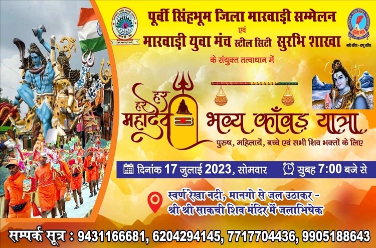 JAMSHEDPUR – The Steel City Surabhi branch of East Singhbhum District Marwari Conference and Marwari Yuva Manch will organize a grand Kanwar Yatra on Monday, July 17.
