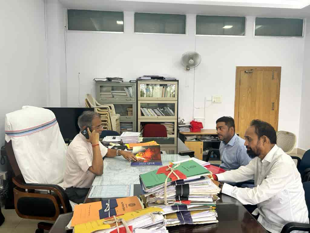 In a meeting with KK Lal, MP Vidyut Varan Mahto discusses progress on road construction from Khasmahal Chowk to Golpahari.