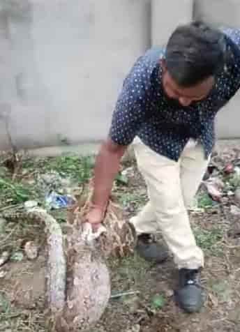 Expert snake-catcher, Chandan Pathak, swoops in to safely capture and relocate an 8-foot python found at Amar Jyoti School, Jamshedpur.