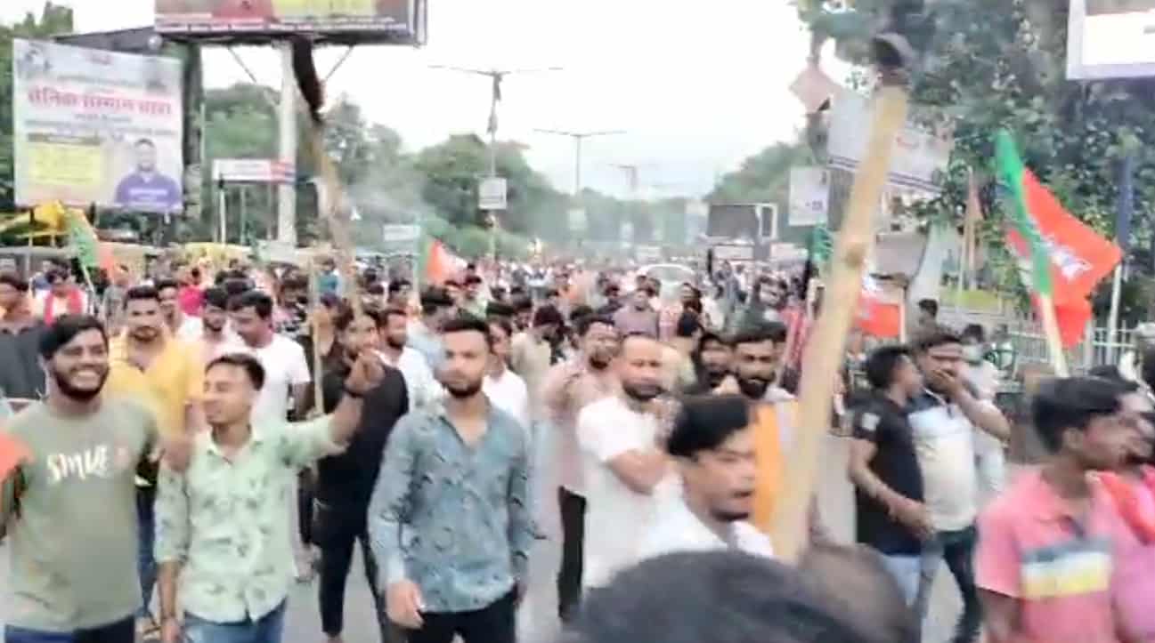 State President of BJYM, Kilshay Tiwari, was present, raising slogans against the state government’s policies.