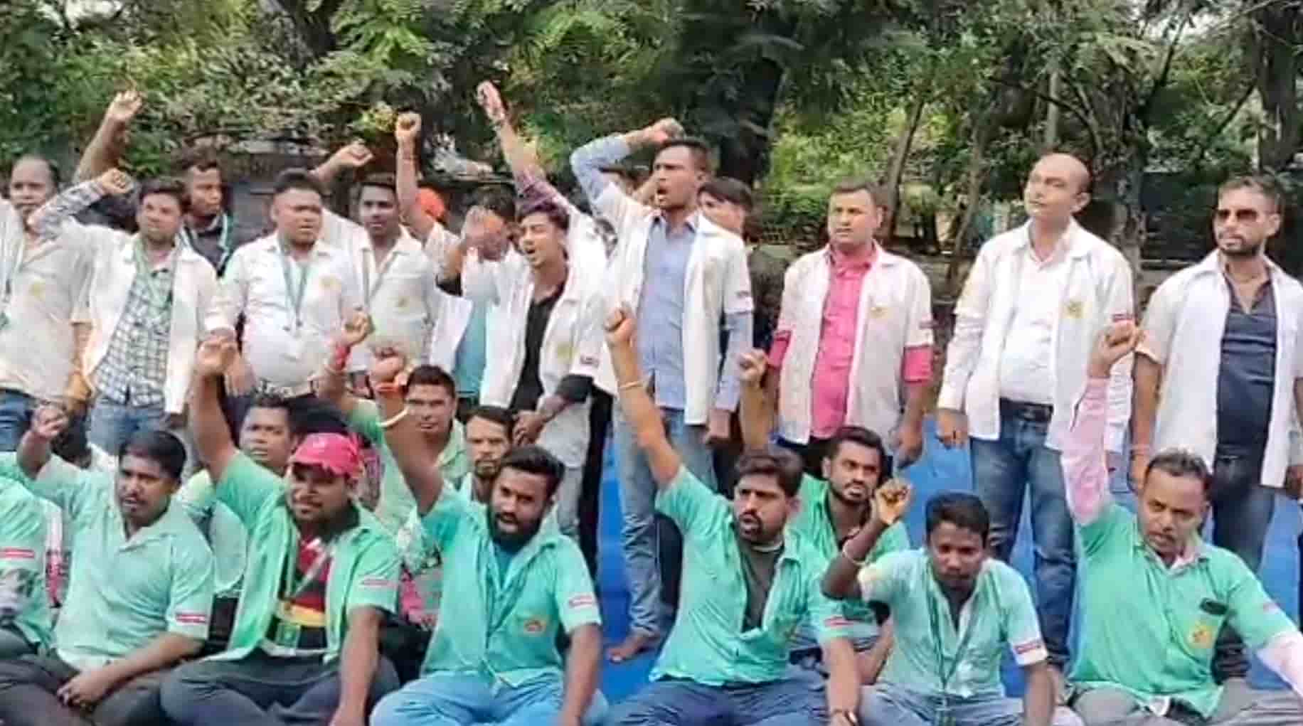 Ambulance drivers and EMTs of Jamshedpur government hospitals stage strike and demonstration due to unpaid salaries for the past five months.