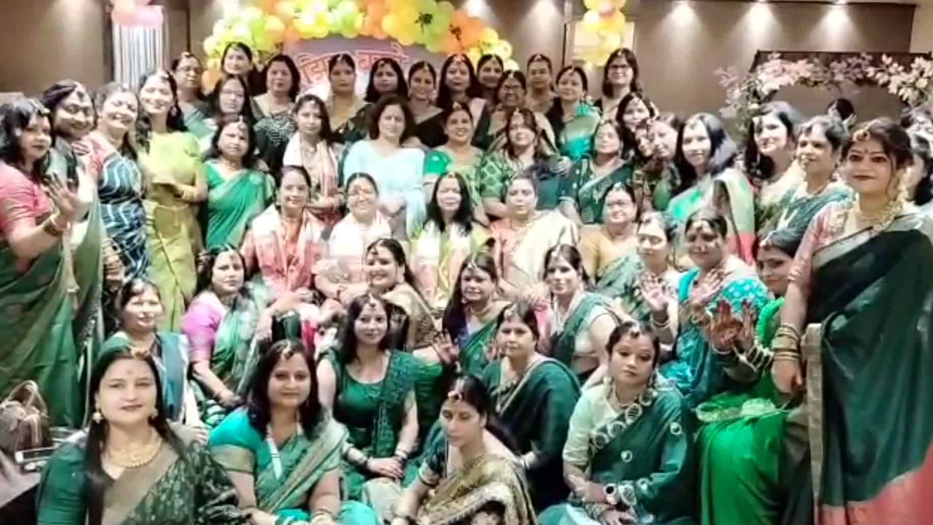 सावन मिलन समारोह में उपस्थित सभी लोग हरे रंग के कपड़े पहने हुए थे, जो सावन के मौसम की भव्यता को दर्शा रहे थे.