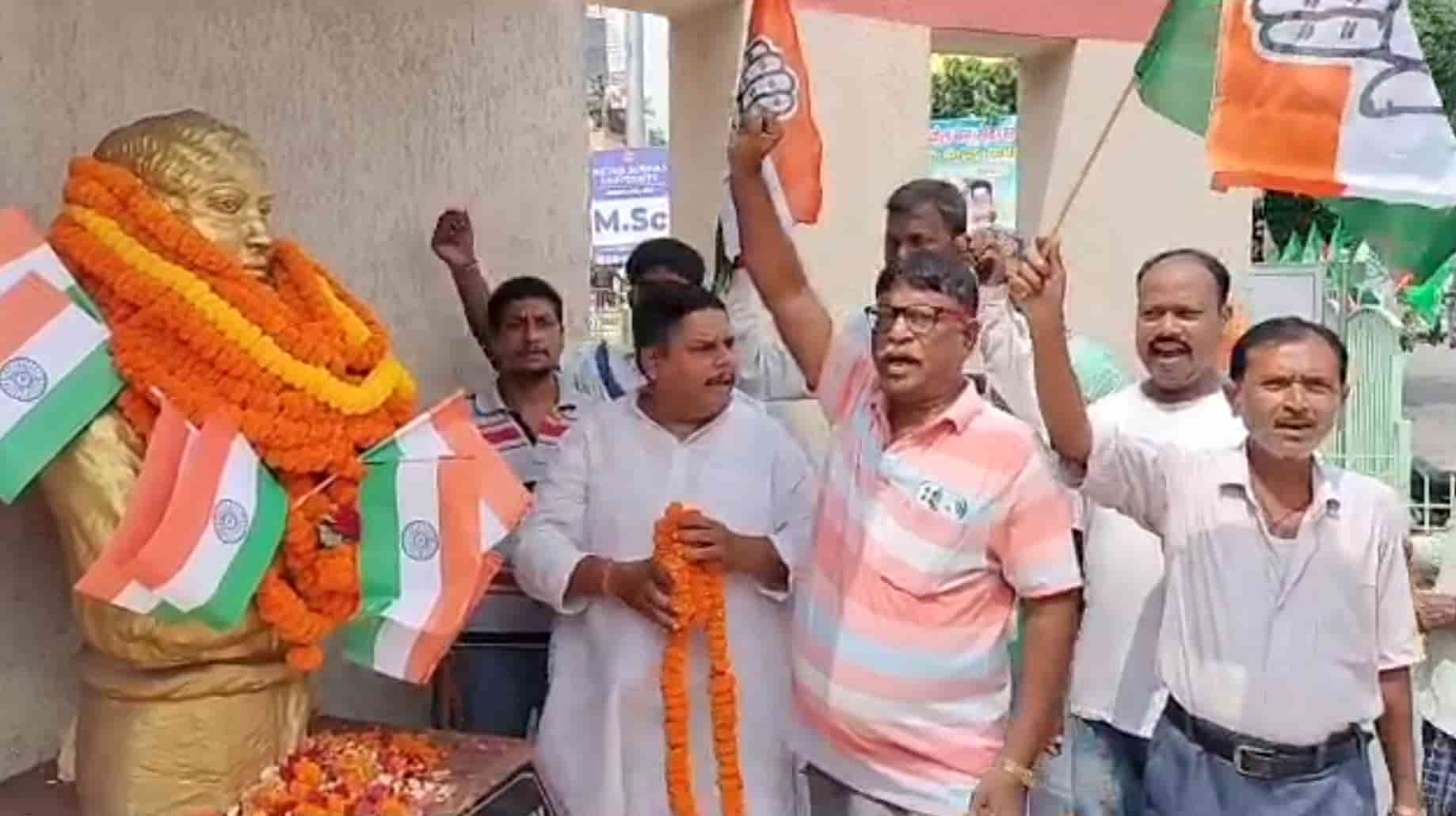 Under the leadership of District Congress Vice President Jitendra Singh, Congress workers reached the statue of martyr Khudiram Bose located in Mango and garlanded the martyr’s statue.