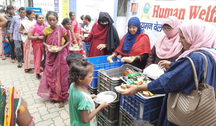 Together with the retired teachers from the Women’s Wing of Human Welfare Trust, such as Aamna Begum, Shahnaz Begum, Naseem Begum, Reshma Begum, Bilkis Bano, and Shamshad Begum, they distributed food, fruits, crackers, mineral water, and other items to patients and their caregivers.
