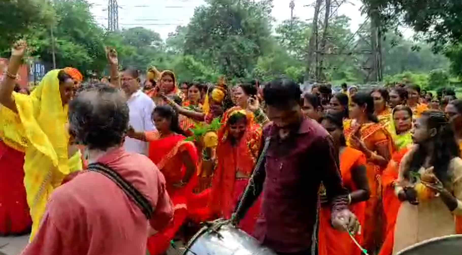 Leaving the temple premises, the devotees traveled to the Swarnarekha River, reaching Domuhani where they collected water.