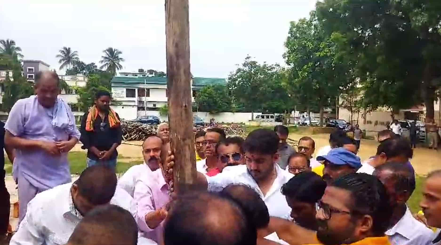 अनोखे पंडाल के लिए भूमि पूजन का आयोजन; राजस्थान मंदिर की प्रतिकृति, मां दुर्गा की प्रतिमाएं होंगी