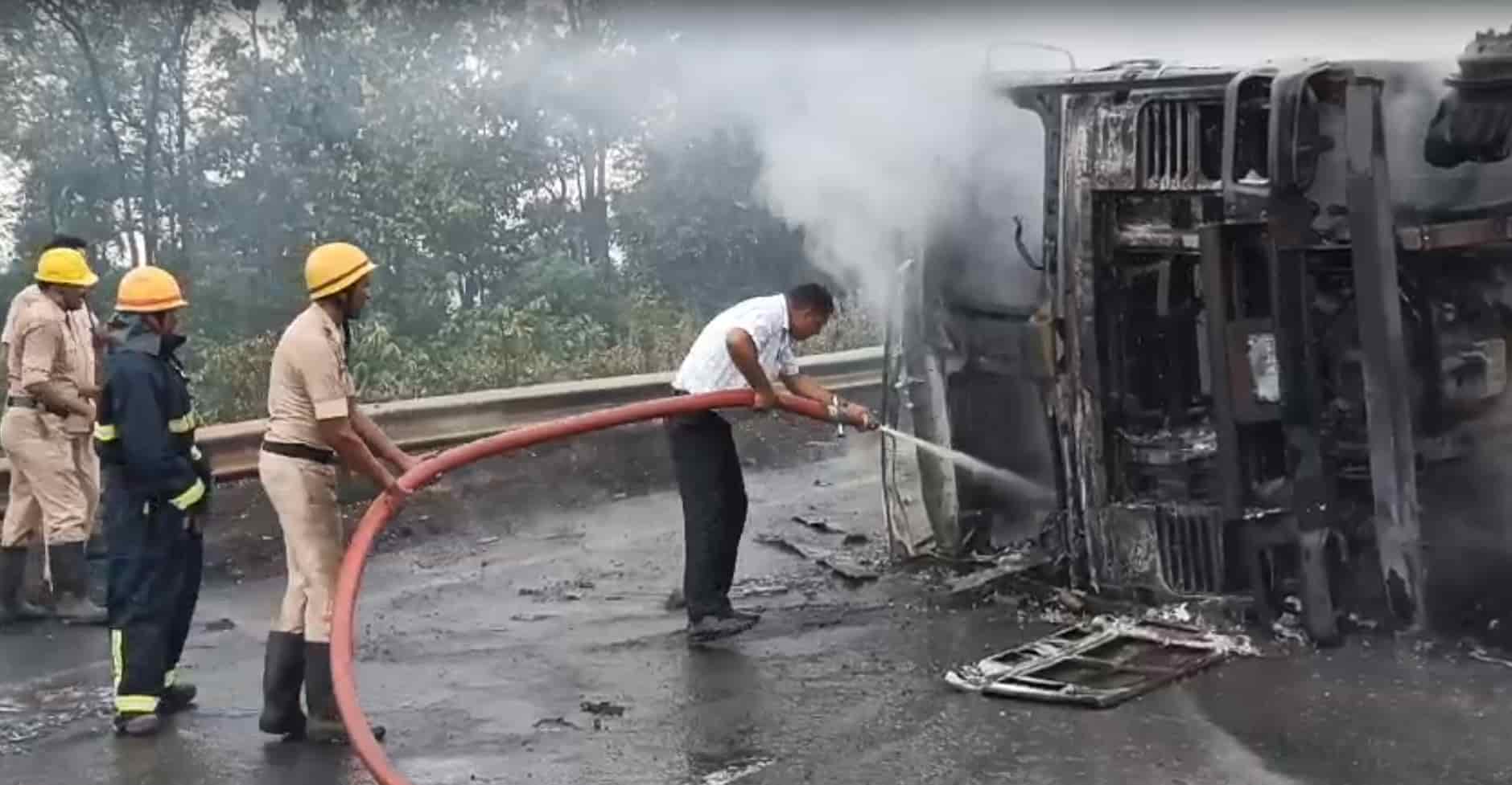 Charhi Ghati Blaze Halts NH 33 Traffic, Injures Driver and Helper