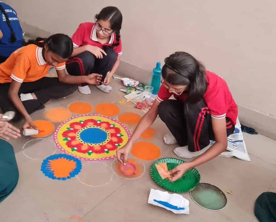 Finally, the rangoli making competition for the senior students of standards 9 to 12 showcased intricate designs and vibrant colors.