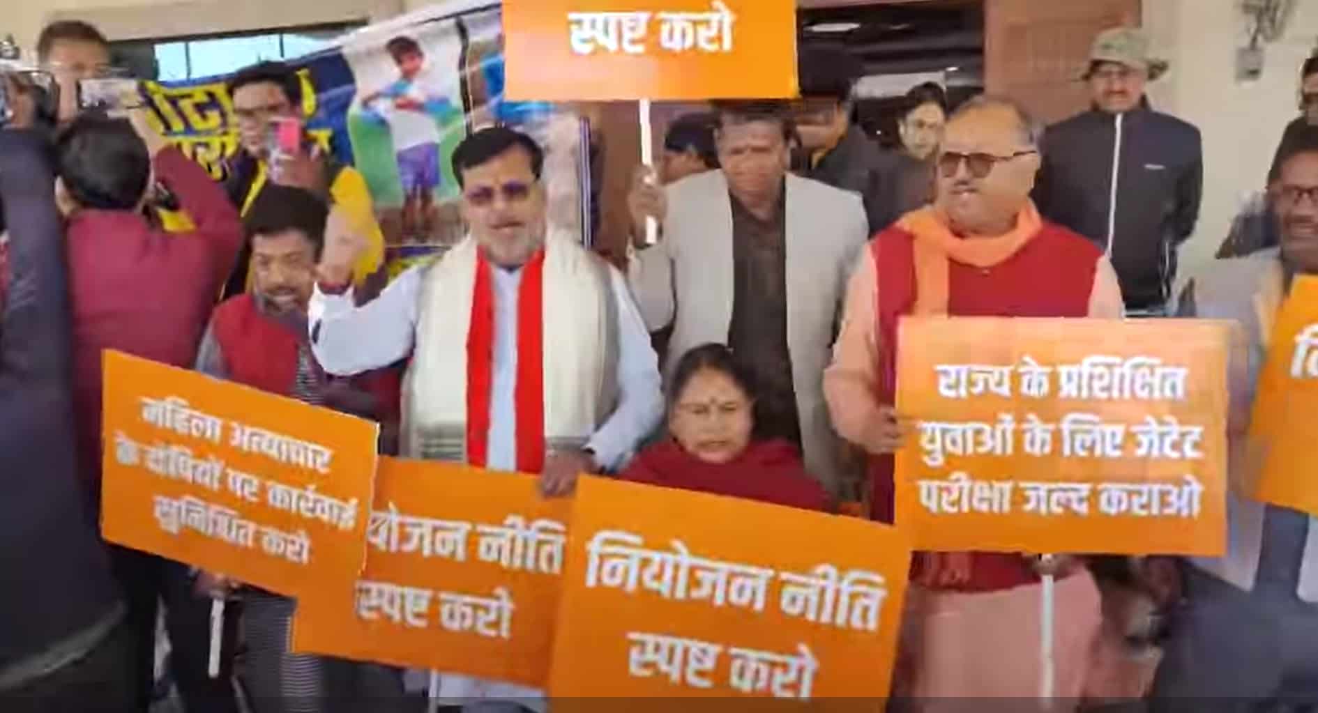 भाजपा ने झारखंड विधानसभा में हेमंत सरकार की नियोजन नीति के खिलाफ विरोध प्रदर्शन किया