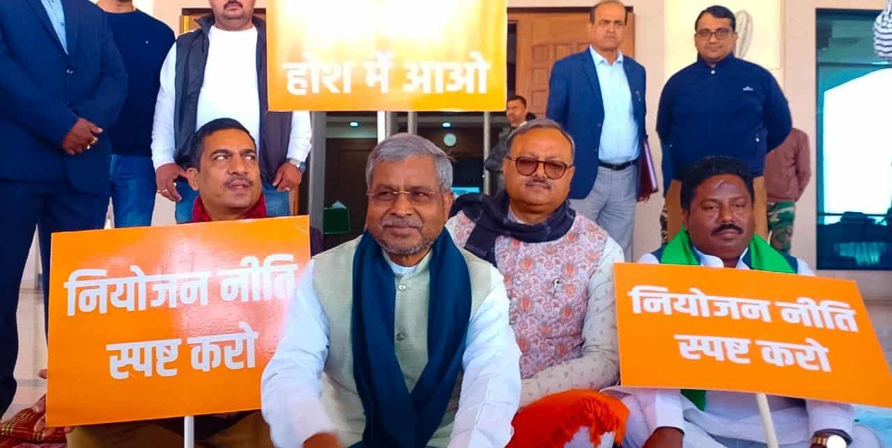 इससे पहले प्रदर्शन किया बी जे पी युवा विरोधी हेमंत सरकार से रोजगार नीति स्पष्ट करने और लाखों बेरोजगार युवाओं को रोजगार देने की मांग को लेकर विधानसभा परिसर में विधायकों की बैठक हुई.