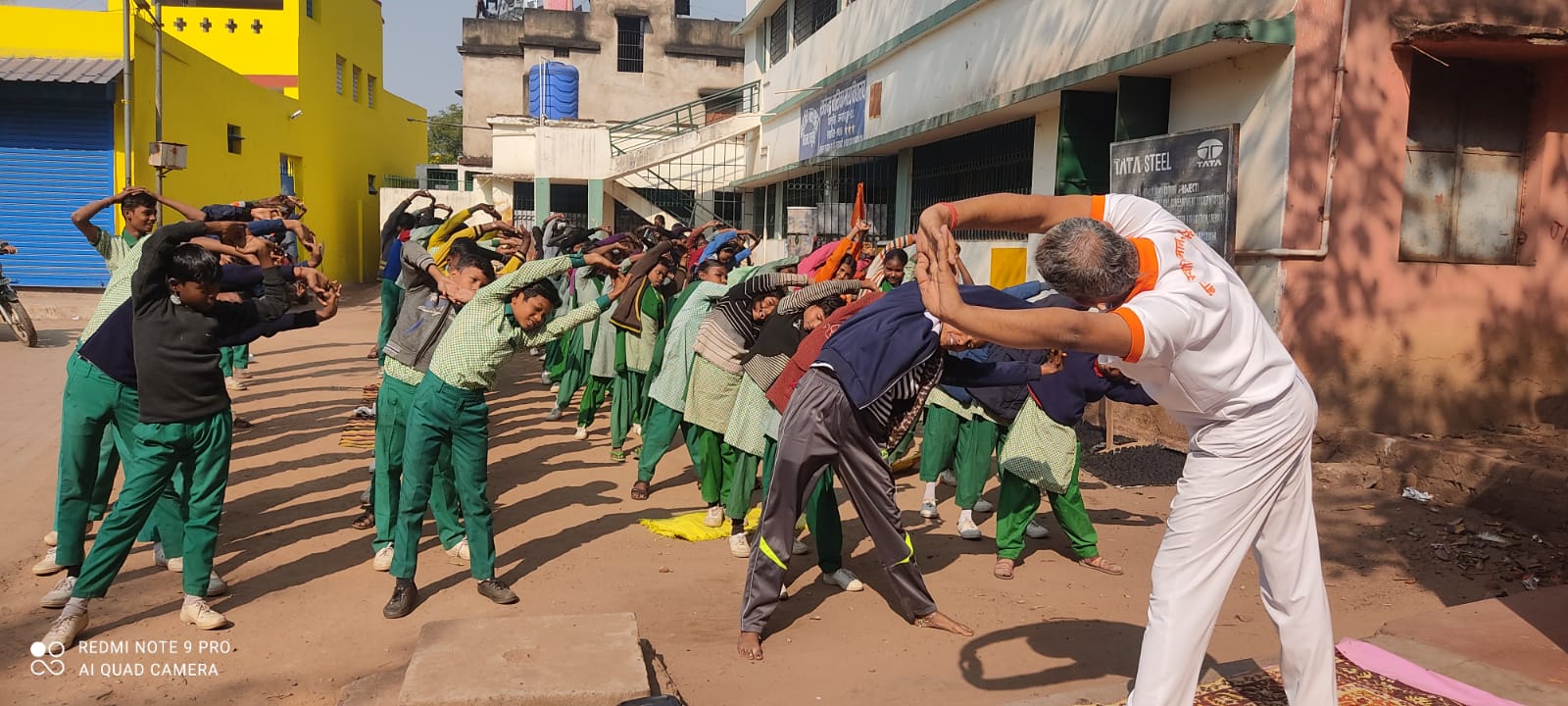 JAMSHEDPUR – After the morning assembly, the students of Rajendra Girls Middle School in Parsudih enthusiastically participated in a yoga awareness program.