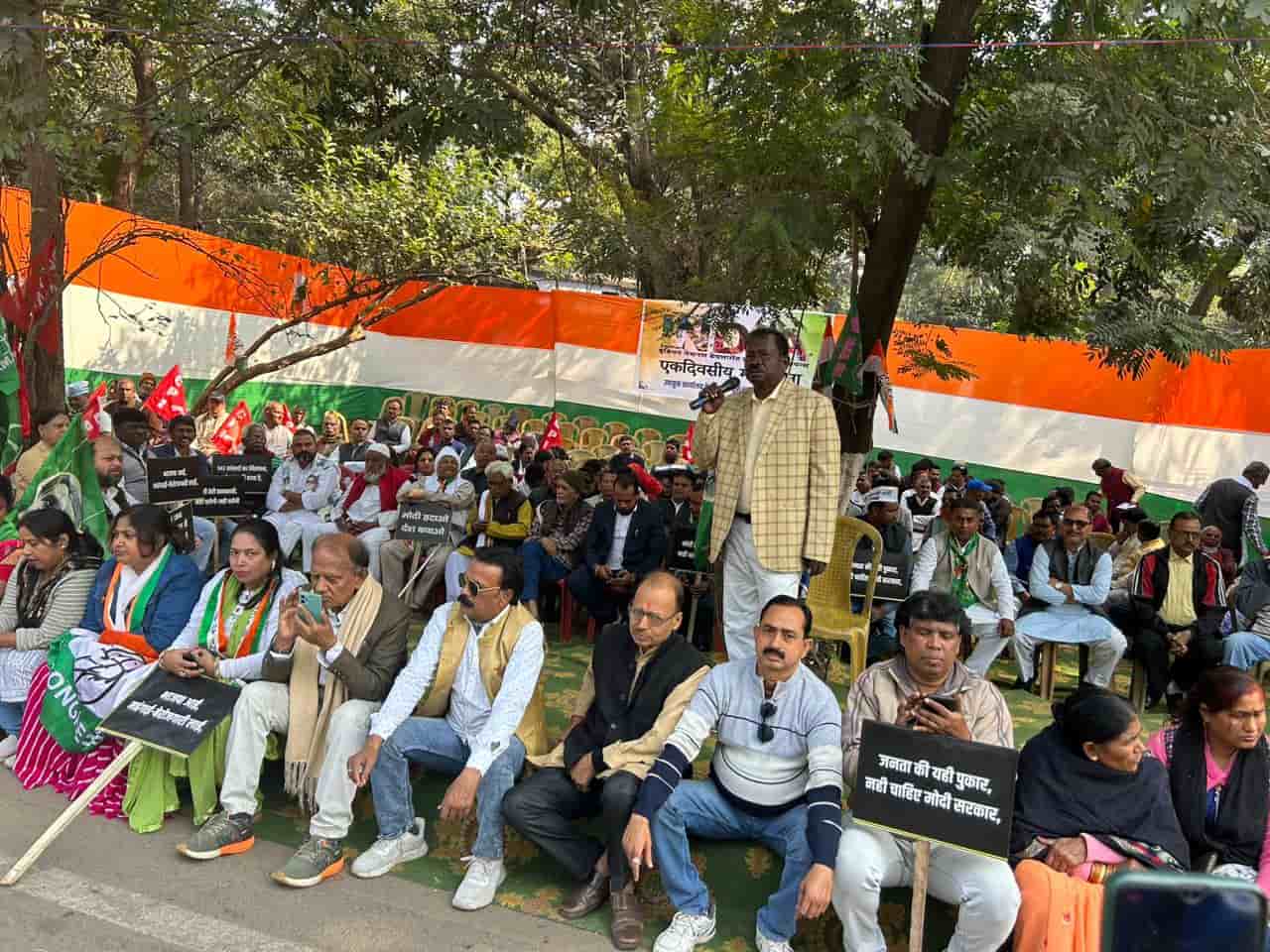 The protest saw active participation from Jharkhand Mukti Morcha (JMM), Congress, AITUC, and other opposition parties.