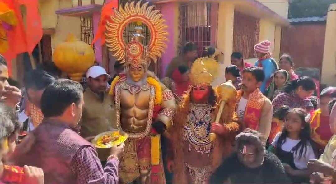 Artists from Allahabad, dressed as Lord Shri Ram, Mata Sita, and Bajrangbali, were part of this procession, inviting people to the upcoming program.