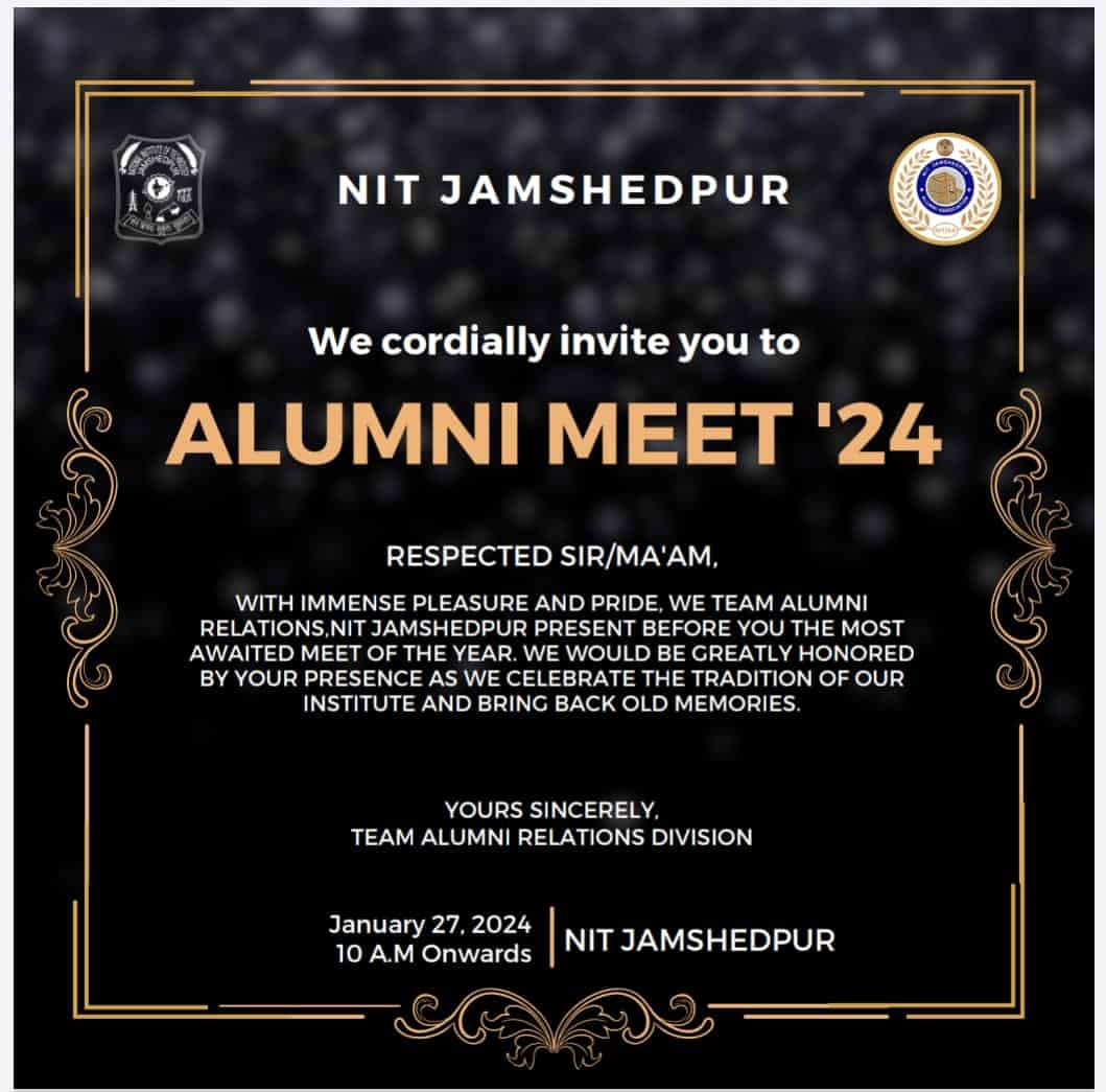 The NIT Jamshedpur Alumni Association (NITJA) is coordinating the event in collaboration with notable faculty members.