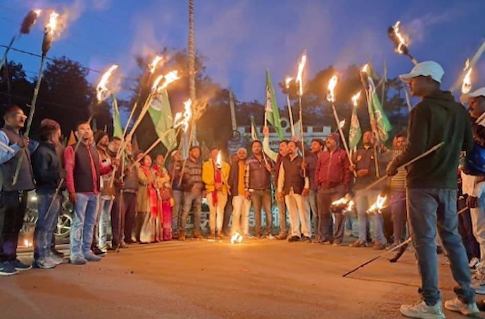 Jharkhand Mukti Morcha (JMM) in West Singhbhum organizes a torchlight procession to protest against the alleged harassment of Chief Minister Hemant Soren by ED, BJP, and the central government.