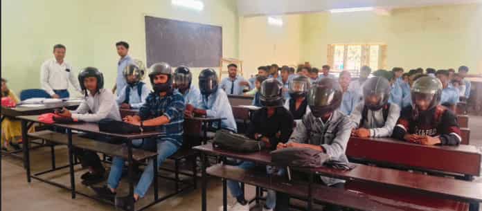 विरोध स्वरूप जमशेदपुर के छात्रों ने कक्षा में हेलमेट पहना
