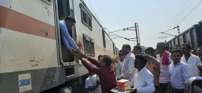 Galudih BJP workers welcomed the train’s crew with traditional garlands.
