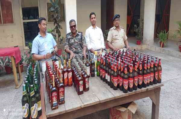 The confiscated liquor, including various brands and 123 bottles of Kingfisher Beer, originated from West Bengal.