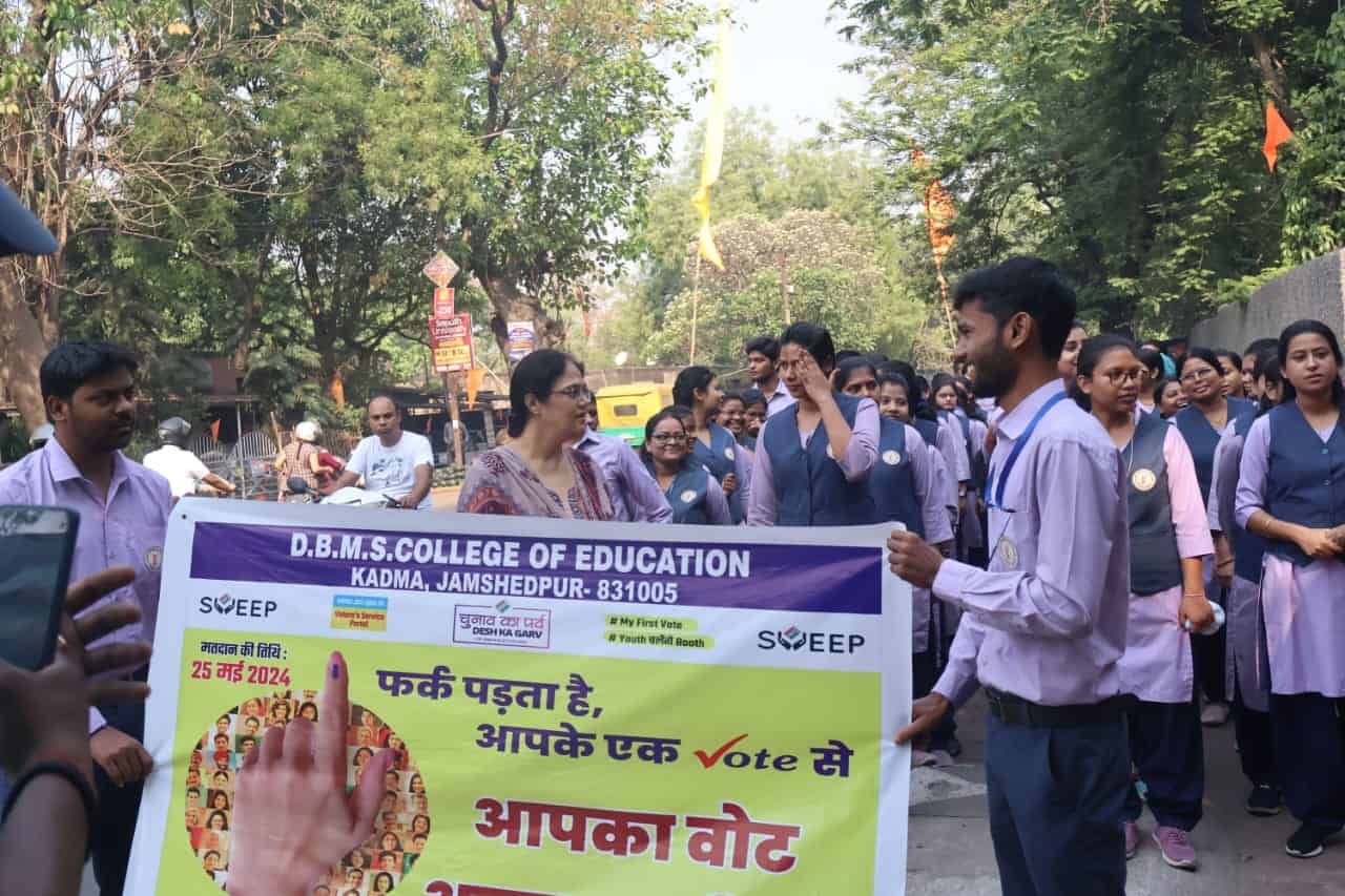 [tag education, शिक्षा, DBMS College voter awareness, SVEEP rally Jamshedpur, Kadma Bazaar electoral event, educational campaign voter turnout, voter education 2024, DBMS College, Jamshedpur electoral participation, college student voter mobilization, voter turnout awareness, DBMS College SVEEP program]
