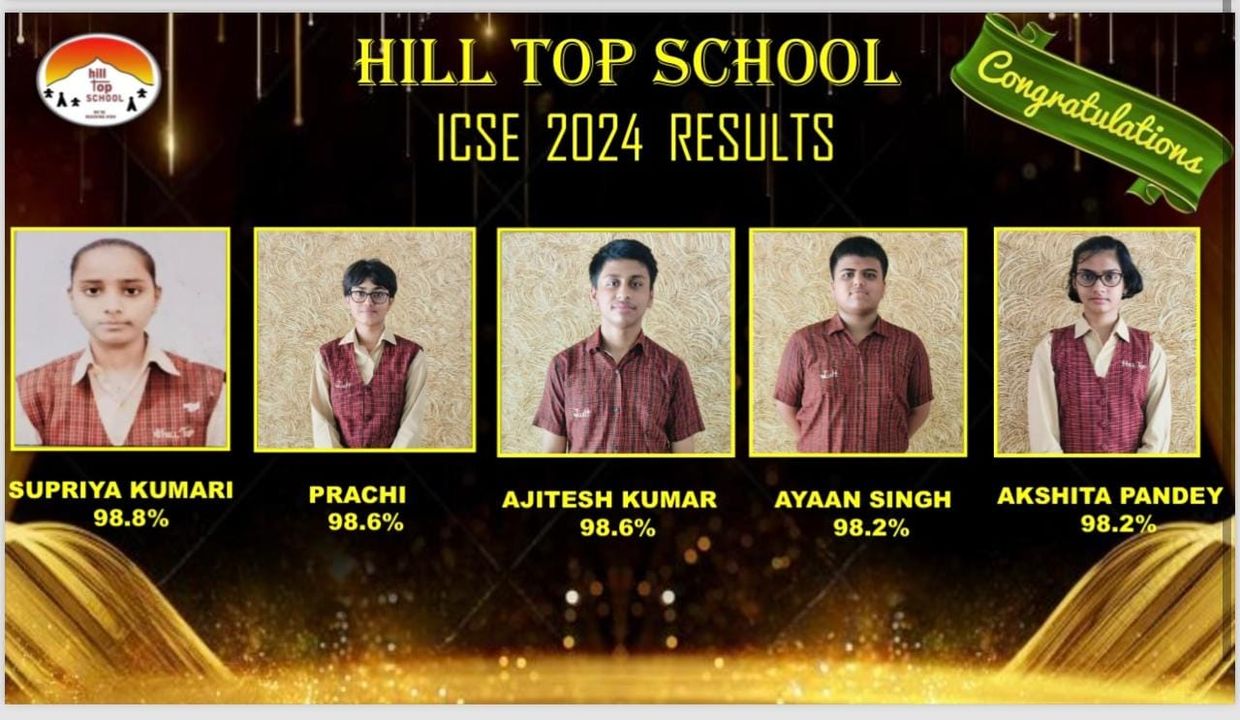 JAMSHEDPUR – Hill Top School continues to set new benchmarks in academic excellence, as evidenced by the exceptional results in the ICSE and ISC board examinations for the year 2024.