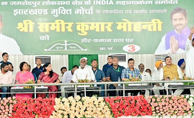 JAMSHEDPUR – A massive rally was organized by India Alliance at Gopal Maidan in Jamshedpur to support Jharkhand Mukti Morcha (JMM) candidate Samir Mohanty.