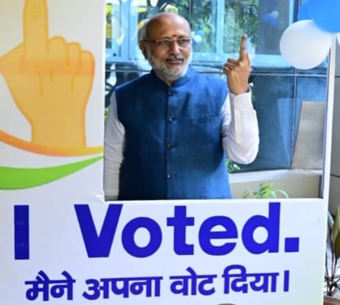 मतदान के बाद राज्यपाल ने निर्धारित सेल्फी क्षेत्र में फोटो खिंचवाई।
